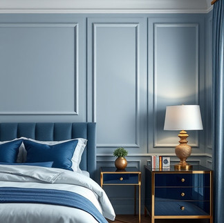 Mix blue tones with grey textiles and metallic decor for a modern, cool look.